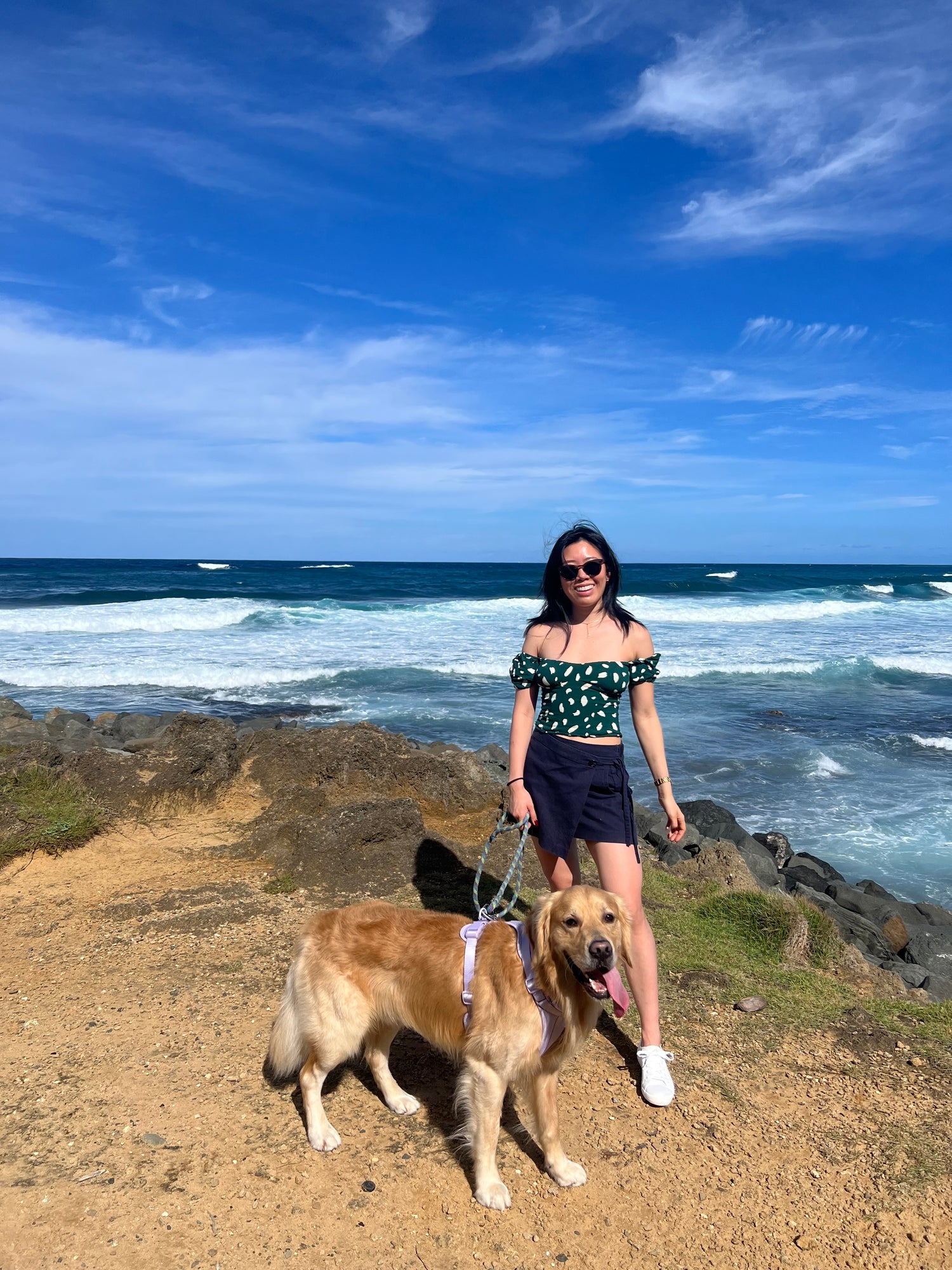 Molo is a 4 year old golden retriever and our muse and inspiration behind our brand! Molo loves meeting new people, being a happy boi, and most of all going on fun adventures.